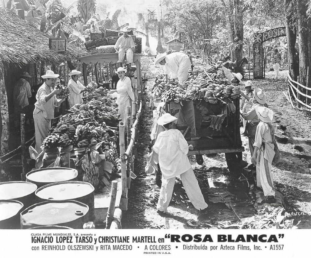Frente al carácter monolítico de estos dos personajes centrales, Gavaldón y Emilio Carballido —que ya habían colaborado el año anterior en la adaptación de otro relato de B. Traven, Macario— crean una memorable galería de comisionistas, mandaderos, correveidiles y sicarios. El resto son escenas paralelas en las que a la junta de accionistas de la compañía petrolífera se yuxtapone un encuadre análogo de la cena en la humilde casa veracruzana, a la modestia del porche de la finca mexicana, la apabullante monumentalidad estalinista del edificio sede de la multinacional estadounidense. Aunque la escena de clausura recupere la mordiente crítica de la fábula —los yanquis buscarán nuevos recursos allá donde sea necesario, como el Golfo Pérsico, sin ir más lejos—, la cinta ha culminado con un montaje de propaganda patriótica en la línea del cine político más discursivo que alienta la nacionalización de los recursos petrolíferos por el presidente Lázaro Cárdenas. No valieron ni las excelentes relaciones de Gavaldón por el PRI ni los veinticuatro años transcurridos desde los hechos narrados: los intereses de Estado y las alusiones a políticos aún en activo abocaron la película a su prohibición. Rosa blanca se verá condenada a dormir el sueño de los justos hasta que el partido de gobierno termine permitiendo su proyección en 1972, once años después de su rodaje.
