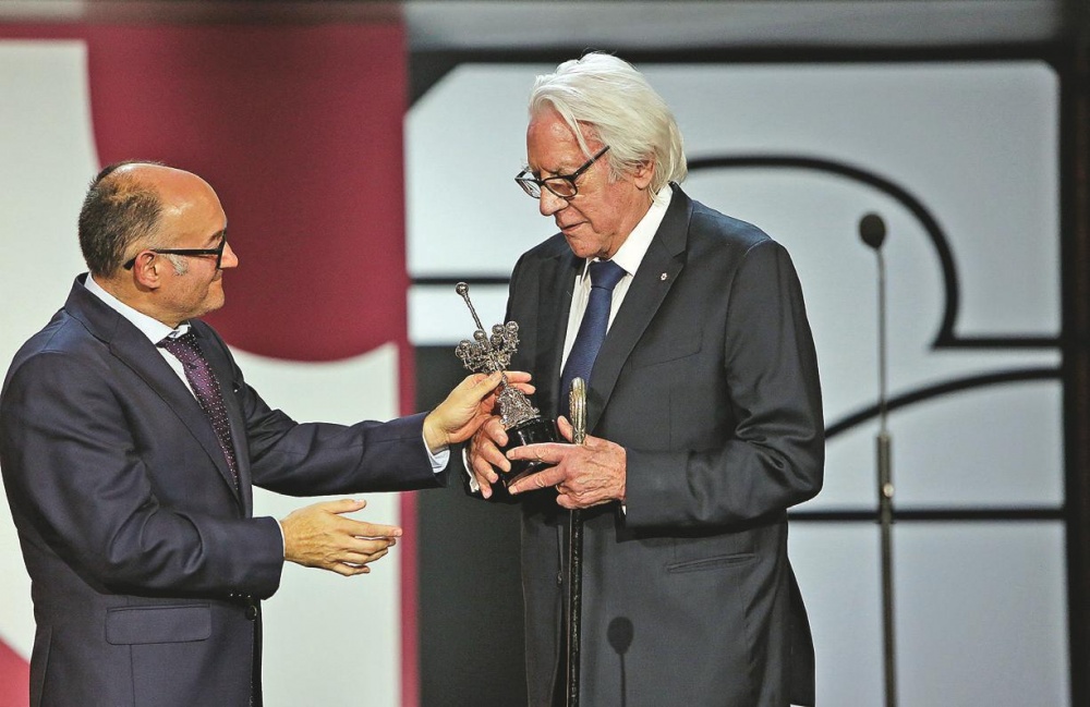 Con todos ustedes una leyenda del cine”. Así anunció Edurne Ormazabal la entrada en el escenario del Kursaal del actor canadiense Donald Sutherland, segundo Premio Donostia de esta edición. Previamente, la presentadora había realizado un extenso repaso a su prolífica carrera que incluye títulos como Doce del patíbulo, Novecento, La invasión de los ultracuerpos y las recientes Los juegos del hambre y Ad Astra. De él destacó su capacidad para atreverse con todos los géneros.