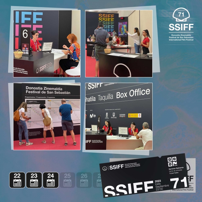 La venta anticipada de entradas se ha desarrollado tanto de forma online como de manera presencial en las taquillas del Zinemaldi Plaza (Kursaal). En el día de hoy se han podido comprar entradas para los tres primeros días del Festival (viernes 22, sábado 23 y domingo 24). Mañana, lunes 18, a las 9:00 horas comenzará la venta de entradas correspondientes al lunes 25, martes 26 y miércoles 27, y el martes, día 19, se podrán adquirir los tickets de las sesiones del jueves 28, viernes 29 y sábado 30.