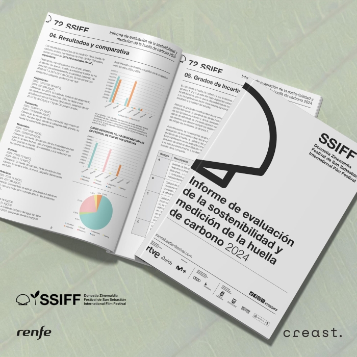 El Festival de San Sebastián ha elaborado su cuarto informe anual de sostenibilidad, que detalla los resultados de la medición de la huella de carbono y la evaluación de la sostenibilidad medioambiental del Festival en su 72ª edición, celebrada entre el 20 y el 28 de septiembre de 2024. El Festival emitió un total de 2574079.65 kg de CO2 equivalente, emisión que ha sido compensada por completo a través del Fondo de Carbono Voluntario de Gipuzkoa, gestionado por Naturklima; es decir, por primera vez desde la elaboración de este informe, en 2021, el Festival ha celebrado una edición carbono neutral.