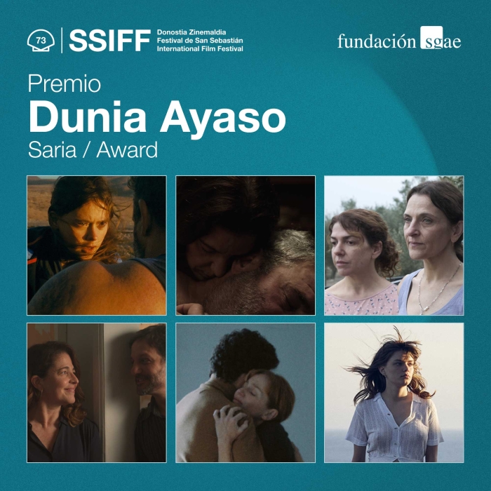 La Fundación SGAE y el Festival de San Sebastián anuncian las seis películas finalistas al Premio Dunia Ayaso 2025, que reconoce el título del último año que mejor refleje la mirada de género: La lucha / Dance of the Living de José Alayón, Los Tortuga / The Exiles de Belén Funes, Mi amiga Eva / My Friend Eva de Cesc Gay, La terra negra / The Black Land (La tierra negra) de Alberto Morais, Romería de Carla Simón y Nosotros / The Story of Us de Helena Taberna. El fallo del galardón se dará a conocer el próximo viernes, 26 de septiembre, a las 17:00 horas en el Club de Prensa del Kursaal.