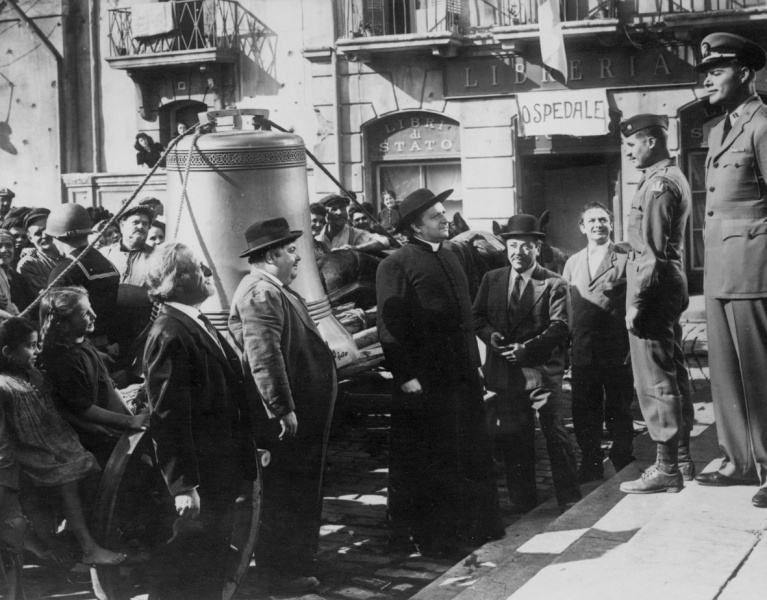 Towards the end of WWII, Major Joppolo has to reinstate civilian administration in a small Italian town. Although he stops the lynching of the former Fascist mayor by the starving citizens, he is nevertheless harsh on other Mussolini supporters. He also has to get supplies into town without interfering with troop movements. As a gesture of affection for the people in his charge, Joppolo tries to replace the enormous church bell stolen at the start of the war.
