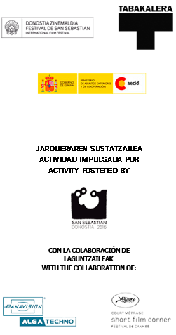 The International Film Students Meeting is jointly organised by the Festival and Tabakalera-International Centre for Contemporary Culture and has the backing of San Sebastian’s Candidature for European of Culture 2016, due to being an obvious exponent of the scenarios and ways of working that the endeavour wishes to promote.