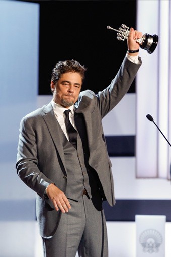 Del Toro made his motion picture debut in John Glen's License to Kill opposite Timothy Dalton's James Bond and has earned critical acclaim for his performances ever since. In addition to winning an Academy Award® for Best Supporting Actor in Steven Soderbergh's Traffic, his performance also garnered a Golden Globe, a Screen Actors Guild Award and BAFTA Awards, the Silver Bear Award at the Berlin International Film Festival, as well as citations from the New York Film Critics Circle, the National Society of Film Critics, and the Chicago Film Critics Association. His work in 21 Grams also earned Del Toro the Audience Award for Best Actor at the 2003 Venice International Film Festival. He earned Independent Spirit Awards for his performances as Fred Fenster in Bryan Singer's The Usual Suspects and as Benny Dalmau in Julian Schnabel's Basquiat.
