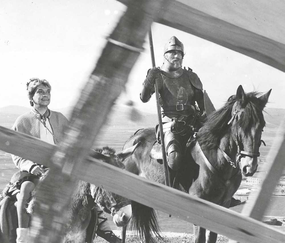En su breve incursión en el cine internacional, Mario Moreno, en arte Cantinflas, fue Passepartout en la faraónica versión de La vuelta al mundo en 80 días realizada por Michael Anderson en 1956, y a punto estuvo de encarnar a Sancho Panza en otra película del mismo productor, el megalómano Michael Todd, nada menos que con Cary Grant en el rol de Don Quijote. Pero tuvo que esperar más de tres lustros para meterse en la piel del fiel escudero cervantino en Don Quijote cabalga de nuevo (1973), una coproducción hispano-mexicana escrita por Carlos Blanco, dirigida por un Roberto Gavaldón en horas bajas y con Fernando Fernán Gómez como Alonso Quijano. Es un producto muy de su tiempo, de los que requerían mayor provisión de aspirinas que de altramuces: no han transcurrido dos minutos de proyección y el cámara ya nos ha bombardeado con, por lo menos, veinte zooms, de avance o de retroceso.