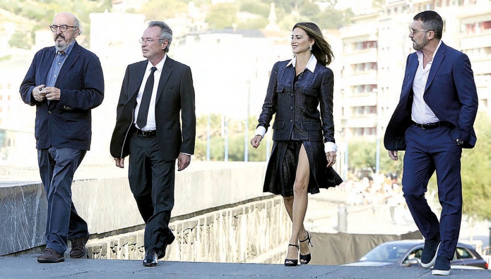 El Kursaal acogió ayer la rueda de prensa de Competencia oficial, la película que ha inaugurado la sección Perlak de esta edición. En ella participaron los tres intérpretes protagonistas Penélope Cruz, Antonio Banderas y Óscar Martínez, el productor Jaume Roures y, vía online, los dos directores argentinos del film: Mariano Cohn y Gastón Duprat.