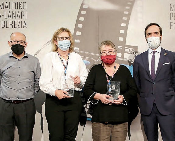 El Festival otorgó ayer en el Kursaal este reconocimiento a las periodistas Inma Merino y Finn Halligan en un encuentro con el director del Festival, José Luis Rebordinos, y el consejero de Turismo, Comercio y Consumo del Gobierno Vasco, Javier Hurtado.