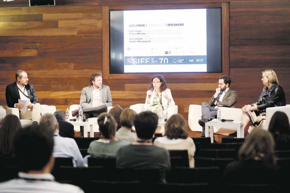 La sala de actos del Museo San Telmo acogió ayer una mesa redonda para reflexionar sobre oportunidades de financiación e inversión pública en el sector audiovisual. Impulsado por el Ministerio de Cultura, el Ministerio de Industria, Comercio y Turismo, Crea SGR, el Ministerio de Asuntos Económicos y Transformación Digital, ENISA y Gobierno Vasco, los paneles fueron moderados por Camilo Vázquez (ICAA). En el primero, participaron Carlo Penna (Ministerio de Cultura y Deporte), Cristina Morales (Ministerio de Asuntos Económicosy Transformación Digital), Jordi Llinares (Ministerio de Industria, Comercio y Turismo) y Aitziber Atorrasagasti (Gobierno Vasco). El segundo panel de la mañana lo conformaron Rafael Lambea (CREA SGR), Fabia Buenaventura (ICEX España Exportación e Inversiones) y Carmen Cuesta (ENISA).