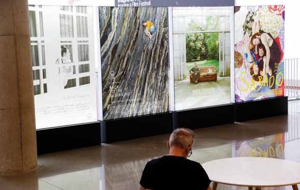 Corría el año 2019 cuando Marina Palacio, que había cursado el postgrado de Creación de Elías Querejeta Zine Eskola y estaba realizando prácticas fotográficas en el Zinemaldia, presentó su proyecto de cárteles de películas imaginarias protagonizados por gente vinculada al Festival. Palacio realizó después el corto Ya no duermo, presentado en la sección Zabaltegi-Tabakalera de 2020, y pasó después por las residencias de Ikusmira Berriak para desarrollar el que será su primer largometraje, Y así seguirán las cosas. Cineasta y fotógrafa que conoce bien el Festival, ha cristalizado finalmente aquel proyecto en una exposición en colaboración entre SSIFF y Tabakalera, titulada "[Film Not Found_Try Again]", que puede verse hasta el 31 de octubre en la segunda planta del edificio.