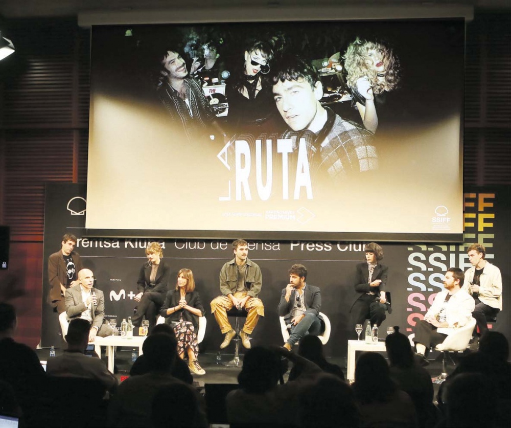 La productora ejecutiva de la serie, Montse García, comentó entre risas: “Llevo tiempo dando la lata con que teníamos entre manos una pedazo de serie y ahora ya habéis podido ver que es verdad. Se trata de una serie con una personalidad impresionante que nos cuenta un viaje vital de la oscuridad a la luz”. La ruta cuenta la historia de cuatro amigos que se conocen en 1981 y los vínculos que van estableciéndose entre ellos en sus salidas nocturnas y en su relación personal. No obstante, el encuentro entre estos personajes tiene lugar, como ha quedado dicho, en el último episodio de la serie siendo un punto de llegada, y no de partida, de las tramas. Esta anomalía, que es la que confiere su originalidad al proyecto, fue, asimismo, lo más complicado del mismo, según reconocieron algunos de los protagonistas que comparecieron ayer en el Kursaal como Àlex Monner o Ricardo Gómez.