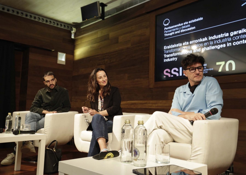 Plataformen bidez online erakusteko eta banatzeko eredu berriak sartzeak aldaketa sakona ekarri du industriako profesionalek beren lana garatzeko dituzten lan-baldintzetan. Plataforma handiekin lan egiten duten hainbat profesional bildu ziren, atzo, San Telmo Museoan mahai-inguru batean parte hartzeko eta gai mamitsu horri buruzko gogoeta egiteko. Plataforma digital berriek ikus- -entzunezko ekoizpen-modu tradizionaletan sartu dituzten eraldaketei buruz luze eta zabal hitz egin zuten Roger Gual zuzendariak eta Marisa Fernández Armenteros eta Ander Sagardoy ekoizleek, Elena Neira moderatzaile zela.