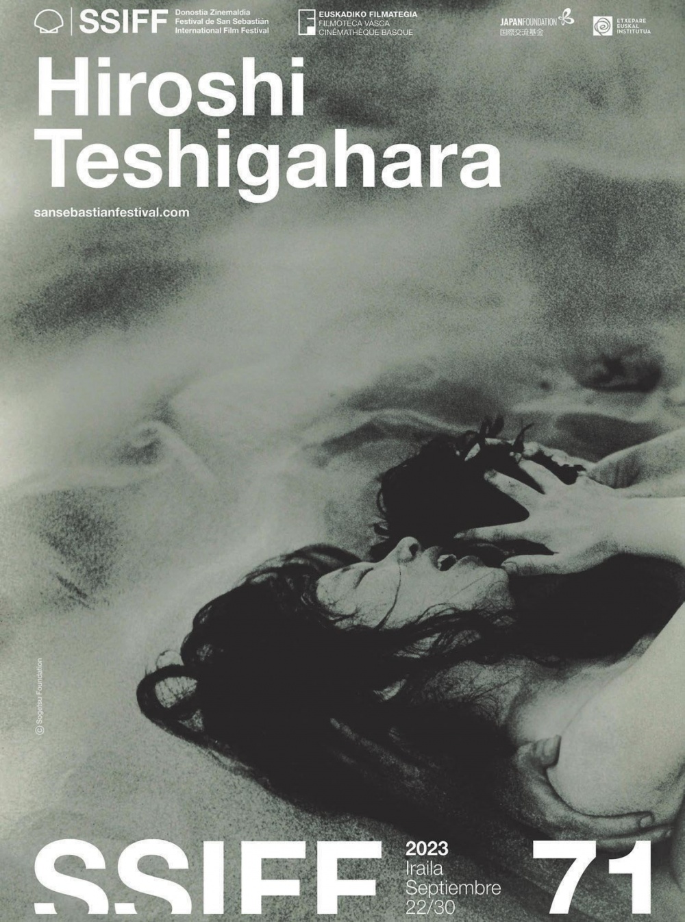Personalidad compleja y escurridiza, escondida entre los intersticios de la Nueva Ola japonesa que capitalizaron Nagisa Oshima y Yoshishige Yoshida, Hiroshi Teshigahara (1927- 2002) realizó, sin embargo, una de las obras clave de aquel movimiento y, en general, de los nuevos cines que se sucedieron, como un seísmo fílmico, en Francia, Inglaterra, Estados Unidos, España, Brasil o Alemania. Se trata por supuesto de La mujer de la arena, una de cuyas imágenes, la de los cuerpos de una mujer y un hombre fundidos con la arena del desierto, ilustra el cartel de la retrospectiva que el Festival y Filmoteca Vasca le dedican este año al director.