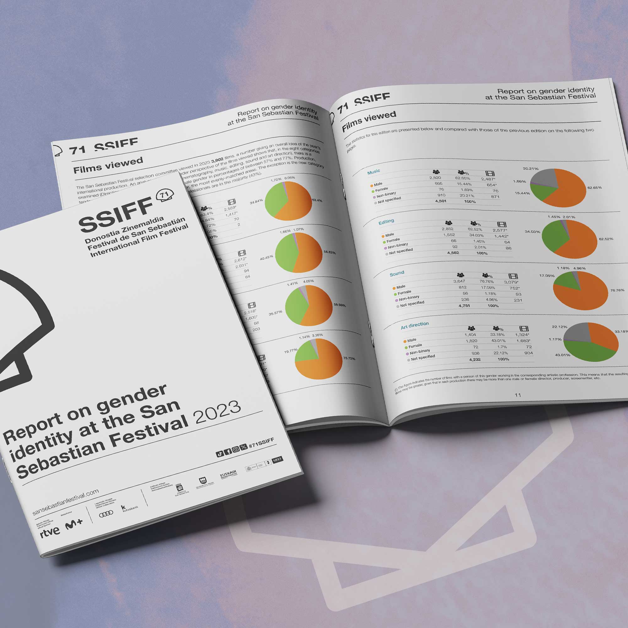 The fifth report drawn up by the San Sebastian Festival from the gender perspective once again increases the scope of its study in 2023 to include the analysis of accreditation-holders and a new professional category: art direction. The aim of this detailed study is to obtain an x-ray showing as precisely as possible the consideration and involvement of women professionals in the film industry. This is an area in which the Festival aims to take an active part rather than simply witnessing its progression.