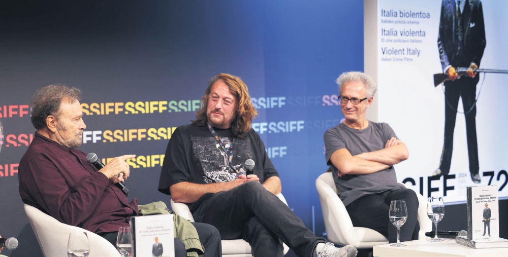 Ayer tuvo lugar en el Club de Prensa del Kursaal la presentación del libro “Italia violenta. El cine policiaco italiano”, un volumen coeditado por el Festival y la Filmoteca Vasca que acompaña la retrospectiva programada en esta edición del Zinemaldia. El autor de la obra, Felipe Cabrerizo estuvo presente en el acto flanqueado por Quim Casas, miembro del comité de selección del Festival y autor del prólogo del libro, y por Franco Nero, rostro icónico del poliziesco italiano y protagonista de El día de la lechuza, una de las películas incluidas en el ciclo y cuya proyección fue presentada por el propio actor el pasado lunes.