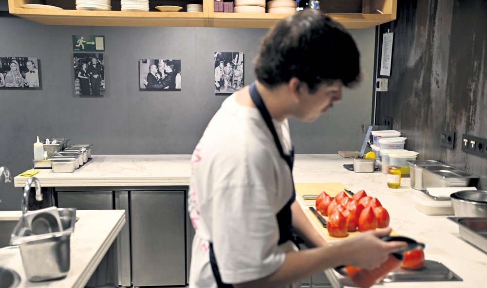 Con ese espíritu, el restaurante ha instalado una exposición de fotografías de archivo del Festival en la pared contigua a la cocina. Esta selección, curada por Juan Vargas, jefe de equipo en Ixo Grupo, en colaboración con el propio Festival, incluye ocho imágenes que abarcan desde 1954 hasta 1983. Aunque la disposición de las fotos es cronológica, Vargas admite que “no fue una decisión intencionada”.