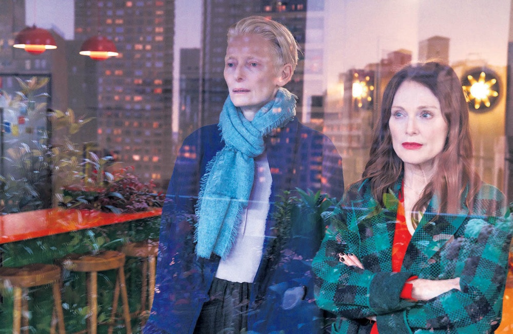 Hablábamos antes de Bergman, y es esta una película de rostros, que busca sus límites en la finitud de sus gestos y en las historias que se cuentan para permanecer vivos. Tilda Swinton y Julianne Moore están expuestas al escrutinio de la cámara, como si no existiera nada más en el mundo que el intercambio de sus afectos. Una pedirá ayuda, la otra la concederá, pero más allá de lo pragmático, ambas se enseñarán mutuamente que aún pueden confiar en lo humano. No importa que se hayan reencontrado en la enfermedad, porque Almodóvar cree que la amistad verdadera lo puede todo. Incluso plantarle cara a la muerte: Martha, la corresponsal de guerra que interpreta Swinton, desde un talante socrático, desde una lucidez que la acepta como aquello que a todos nos iguala; Ingrid, la escritora que encarna Julianne Moore, con la angustia de verla deslizándose entre las sábanas de los que amamos. En ese proceso de aprendizaje mutuo habrá también un espacio importante para el duelo colectivo: si la película, libre adaptación de la novela “Cuál es tu tormento” de Sigrid Nunez, parte de la historia de una mujer que agoniza en un mundo agonizante, parece lógico que lo íntimo se proyecte en la cosa pública, en todo aquello que nos concierne como una civilización que se desmorona. Aquí aparece la responsabilidad social del cineasta manchego, que empezó rompiendo una lanza por la memoria histórica en Madres paralelas y aquí aborda temas como el cambio climático y, sobre todo, el derecho a una muerte digna.