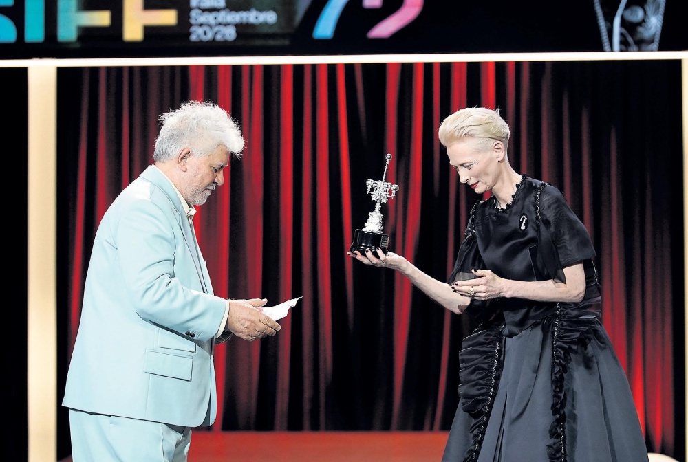 44 años después de su debut en la sección Nuevos Realizadores con Pepi, Luci, Bom y otras chicas del montón, el cineasta manchego recibió de manos de Tilda Swinton el galardón honorífico más importante del Festival, solo dos días después de cumplir 75 años.