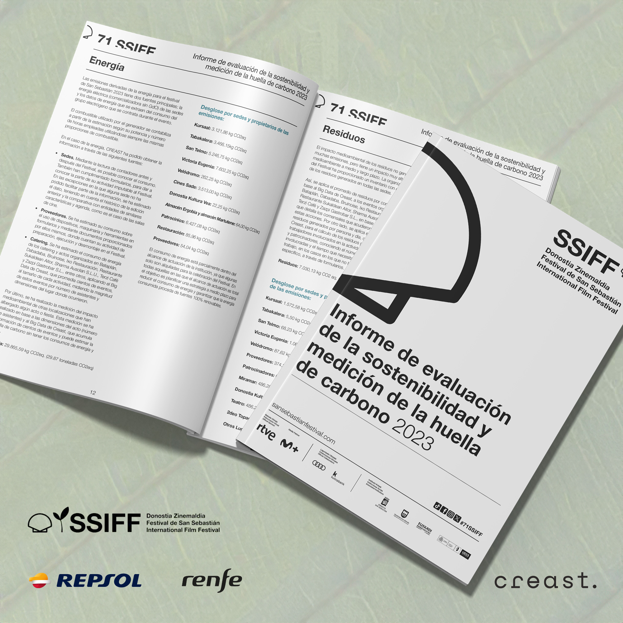 Por tercer año consecutivo, el Festival ha presentado su informe de evaluación de la sostenibilidad y medición de la huella de carbono, cuyo objetivo es seguir avanzando en el objetivo de ser un festival medioambientalmente más sostenible. Por segunda vez, el informe fue elaborado por CREAST, consultora con la que el Festival de San Sebastián ha diseñado un plan de cinco años para convertirse en un festival de emisiones neutras en 2027.