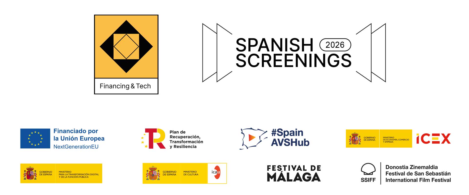Spanish Screenings: Financing & Tech cuenta con el apoyo del Ministerio de Cultura a través del Instituto de la Cinematografía y de las Artes Audiovisuales (ICAA), el Ministerio para la Transformación Digital y de la Función Pública, ICEX, el Festival de Málaga y el Festival de San Sebastián.