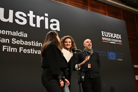 María Astrauskas (directora), José Luis Rebordinos (Director del Festival), Pablo Giorgelli (productor)